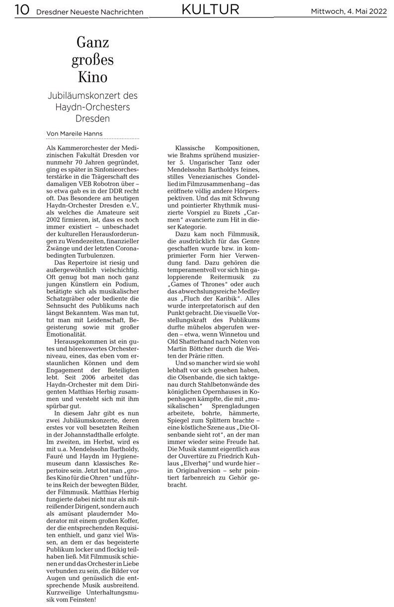 Außerdem freuten wir uns sehr über die Rezension in der DNN vom 04.05.2022, den Sie hier nochmal nachlesen können.