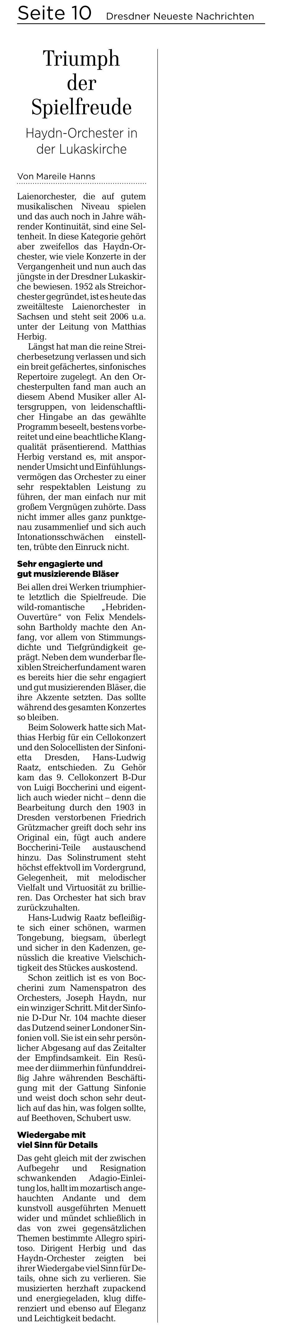 Frühjahrskonzert 2019 des Haydn-Orchesters Dresden